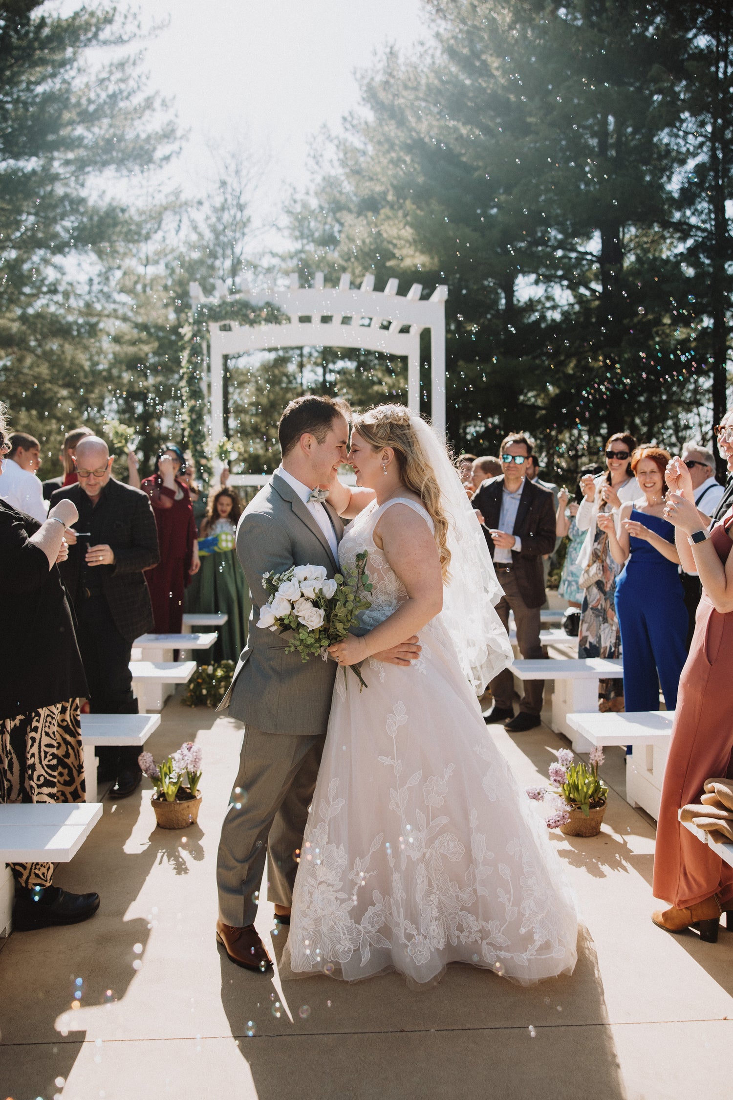 Witness the wonder that is “A Ceremony in the Pines”, our outdoor wedding ceremony complex, as beautiful as it is spellbinding. Designed to showcase our massive towering pines we offer both an open air option and a covered option in case it rains. Both spaces are surrounded by evergreen and provide views that are exceptional compared to the typical drab mid western scenery.